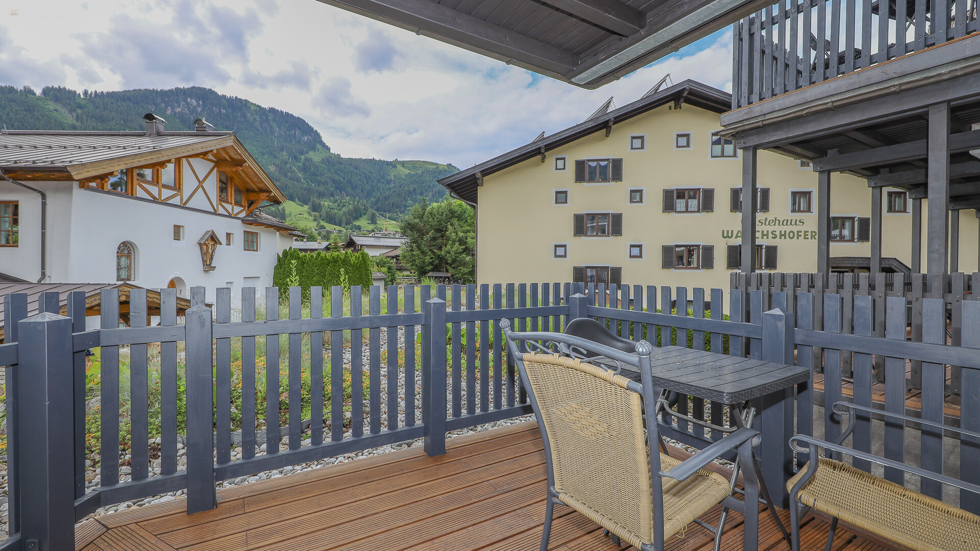 Von der Wohnung hat man einen schönen Ausblick auf den Hahnenkamm und dank der südwestlichen Ausrichtung fast den ganzen Tag Sonne.