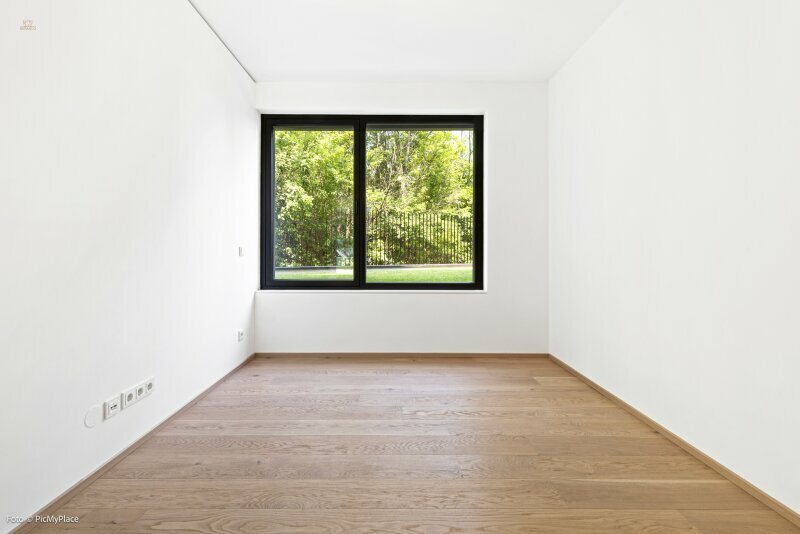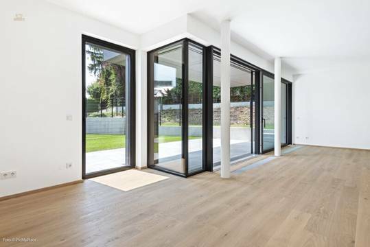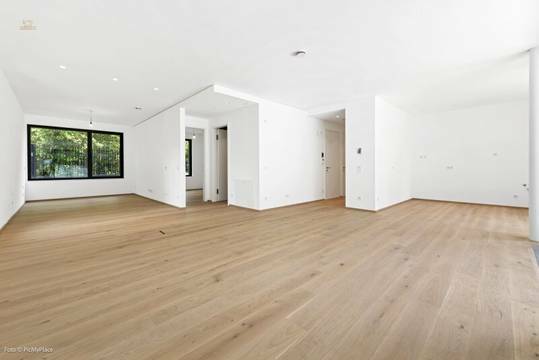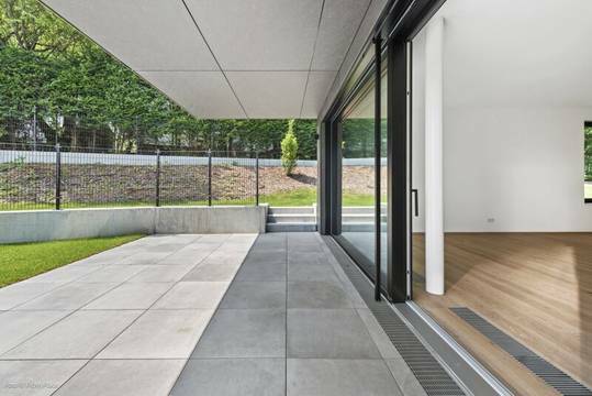 Die Immobilie liegt im Erdgeschoss eines neu erbauten Wohnhauses und erstreckt sich über eine Wohnfläche von ca. 86 m2. Sie teilt sich auf in einen offenen Wohnbereich, ein Zimmer, ein Bad mit Dusche, ein separates WC und einen Abstellraum. Außerdem ist eine große Terrasse und ein knapp 204 m2 großer Garten Teil des Eigentums. Die Haupträume der Wohnung sind mit Eichenparkett ausgestattet und die Nassräume mit Grantitoker-Fliesen ausgekleidet. Die Immobilie verfügt über eine Fußbodenheizung, sowie 3-fach verglaste Holz-Alu-Fenster und -Türen, mit außenliegendem Sonnenschutz. Die Eingangstüren und die Terrassentüren sind einbruchsgesichert. Ebenso besteht die Option einer Alarmanlage.