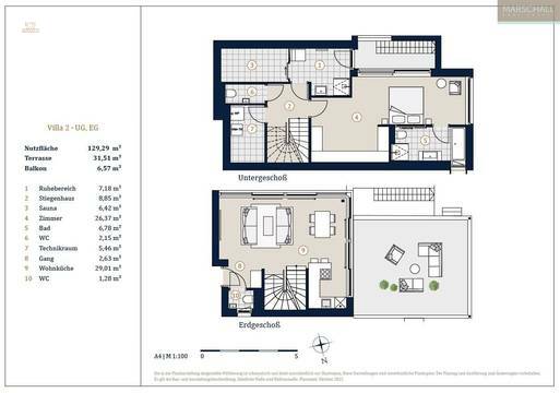 Untergeschoß: Schlafzimmer, Bad mit Dusche, Wanne und WC, Sauna, Ruhebereich mit Dusche, Technikraum, WC, Zugang zum Pool und 192 m² Garten