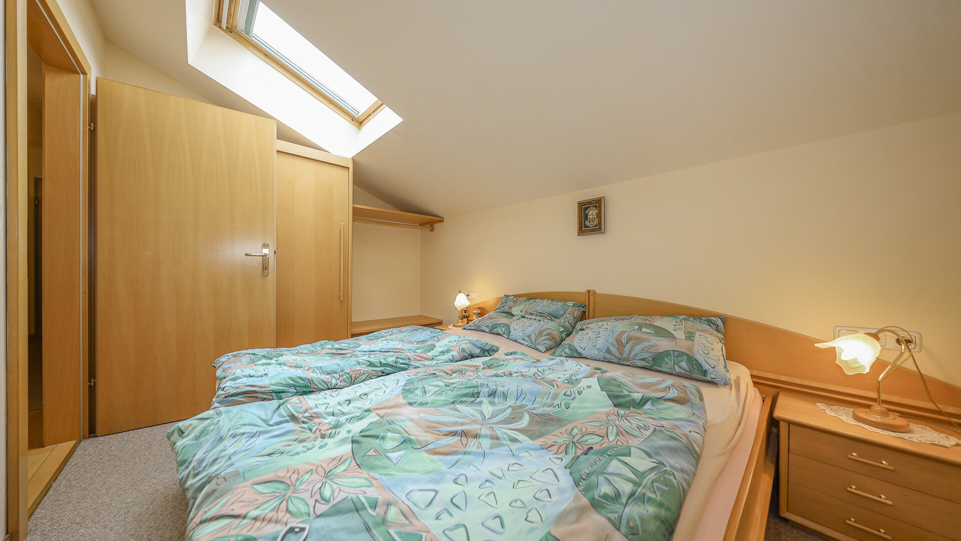 Die Wohnung teilt sich auf in einen Vorraum mit Garderobe, dem Flur welcher alle Zimmer erschließt, zwei Schlafzimmer mit Dachflächenfenstern, einem Badezimmer mit Badewanne/Dusche, WC und Waschmaschinenanschluss sowie dem offenen Wohnraum mit Essbereich, Küche und Abstellraum.
