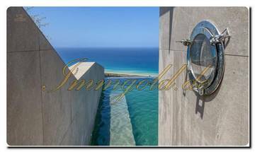 Es wurden keine Kosten und Mühen gescheut, um hochwertige Materialien und stilvolles Design zu verwenden: Die modernistische Struktur wurde sorgfältig geplant, um die Quantität und Qualität des Lichts, das in das Haus eindringt, zu maximieren. An einigen Stellen des Grundstücks, sowohl innen als auch außen, fällt den ganzen Tag über direktes Licht ein, bis der Himmel über dem türkisfarbenen Wasser in einem schillernden Schauspiel explodiert, wenn die Sonne hinter dem fernen Kap untergeht.