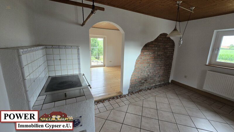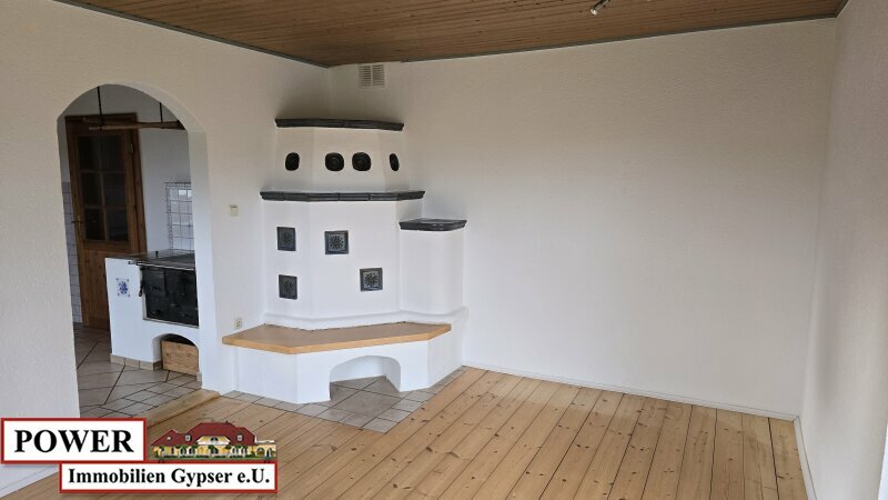 Ein Kachelofen befindet sich im Wohnraum, um die wohlige Wärme im Haus zu genießen und auch Heizkosten zu sparen.