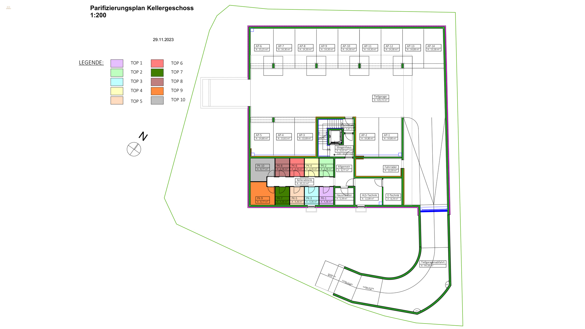 Jedes der Apartments verfügt über mindestens einen Autoabstellplatz in der Tiefgarage und ist von dort bequem mit dem Lift erreichbar.