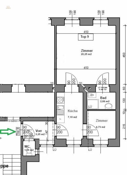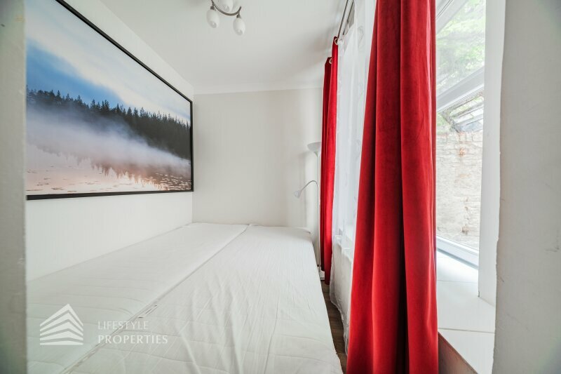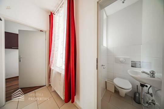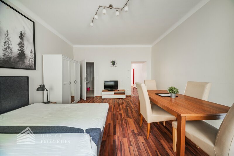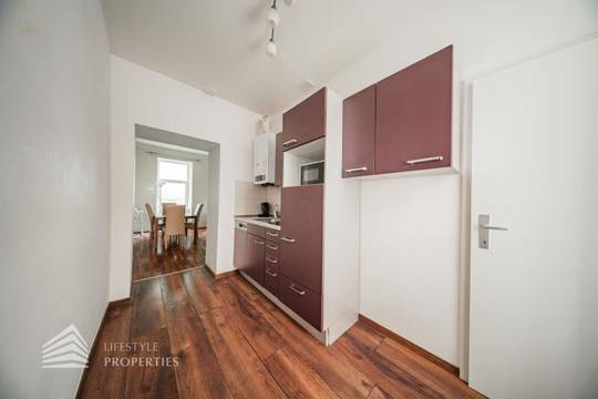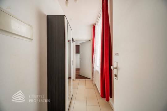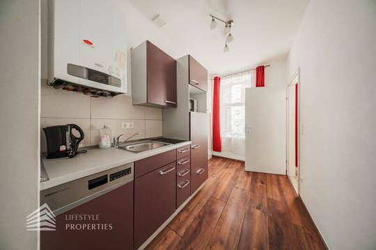 Die Wohnung hat eine Größe von ca. 39 m² und befindet sich im Hochparterre eines Stilaltbaus aus der Jahrhundertwende mit glatter Fassade und einladendem Entree. Sie gliedert sich in einen Vorraum, eine Wohnküche, ein Schlafzimmer, ein Bad mit Dusche und ein separates WC.
