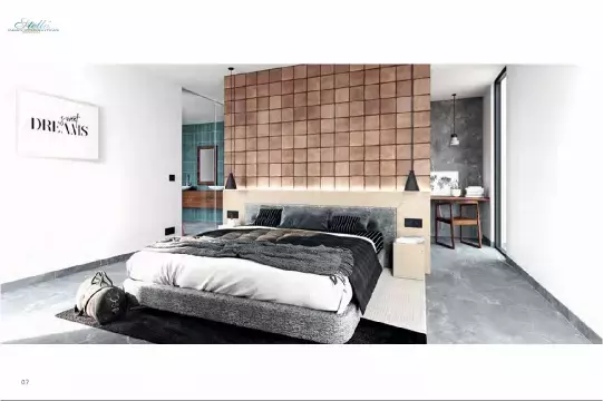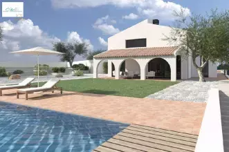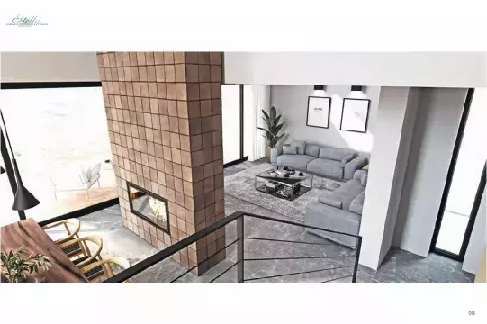 Diese moderne Villa im Finca-Stil wird auf einem Grundstück von 10.920 m2 im Hinterland von Teulada-Moraira nur 4 km von der Küste entfernt gebaut. Die Villa ist über zwei Etagen + Garage im Untergeschoss verteilt. Im Erdgeschoss betritt man eine geräumige Halle, die den Wohnbereich von den Schlafräumen trennt. Auf der Südseite des Hauses befindet sich ein geräumiges Wohn-Esszimmer mit angrenzender moderner Küche mit Insel. Neben der Küche befindet sich das Gäste-WC. Die Schlafzimmer befinden sich auf der Nordseite der Villa. Im Erdgeschoss befindet sich das Hauptschlafzimmer mit einem geräumigen Badezimmer mit Badewanne, Dusche und Doppelwaschbecken und ein zweites Doppelschlafzimmer mit einem Badezimmer en suite. Im Flur gibt es eine weitere Waschküche und eine Treppe zum Obergeschoss und zum Keller. Das Obergeschoss besteht aus zwei Doppelschlafzimmern, jedes mit eigenem Bad und einem geräumigen Büro. Im Untergeschoss befinden sich eine Doppelgarage und ein Badezimmer. Vom Wohnzimmer aus gelangt man durch Schiebefenster auf das „riu rau“, eine große überdachte Terrasse mit Blick auf den Garten und den Pool. Am Pool befindet sich ein überdachter Essbereich mit einer Küche, ideal um den ganzen Sommer am Pool zu verbringen. Die Villa ist umgeben von einem mediterranen Garten mit automatischer Bewässerung und mehreren Terrassen. Es gibt eine Auffahrt mit Parkplätzen für mehrere Autos. Eine Vorinstallation für eine Poolheizung wird installiert und eine Vorinstallation für eine Alarmanlage. Als Klimaanlage wird das System AEROTHERMIA zum Heizen und Kühlen sowie eine Fußbodenheizung im gesamten Haus mit AIRZONE-System installiert. Die Lizenz für das Projekt ist beantragt und die Finca kann in einem Jahr gebaut werden. Das Grundstück befindet sich im schönen Hinterland von Teulada-Moraira, nur wenige Kilometer von der schönen Küste entfernt.
