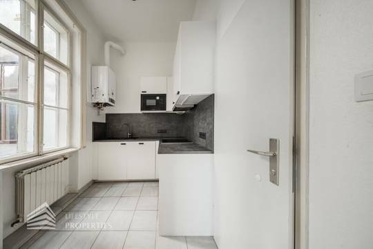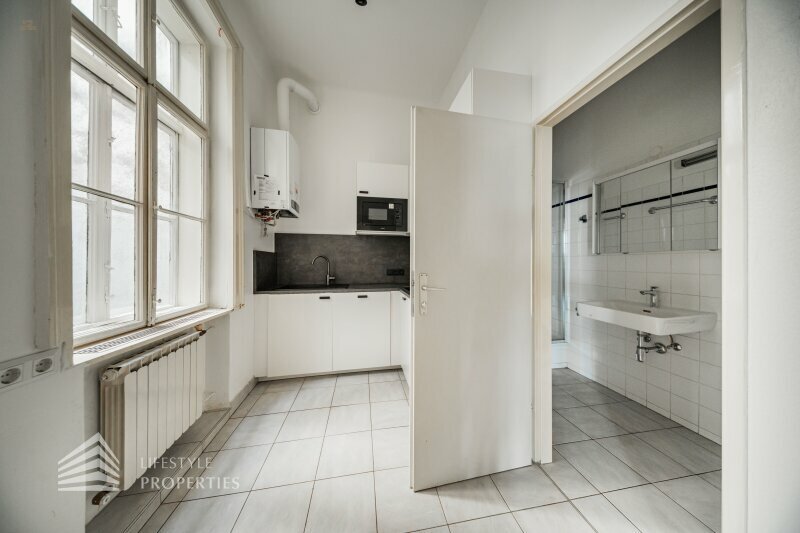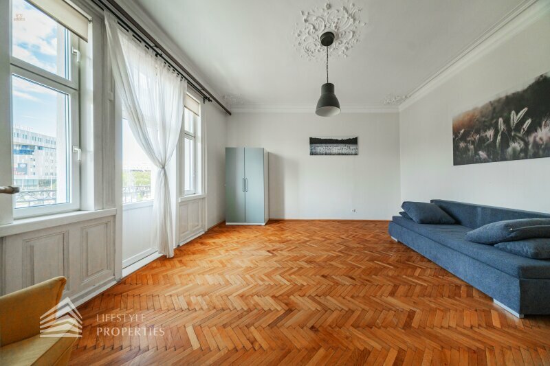 Die Wohnung befindet sich im 3. Stock eines schönen Stilaltbaus aus dem Jahr 1897 und gliedert sich in einen Vorraum, eine Küche, ein Wohnzimmer, ein Badezimmer und ein separates WC. Die Wohnung ist möbliert.