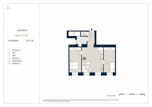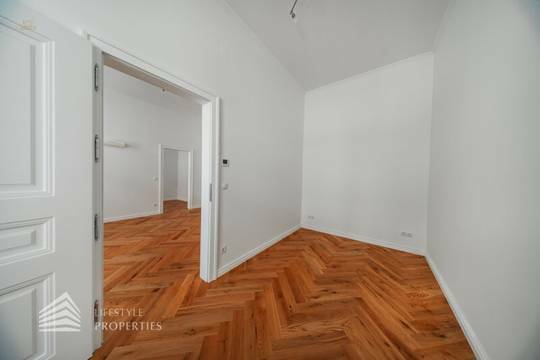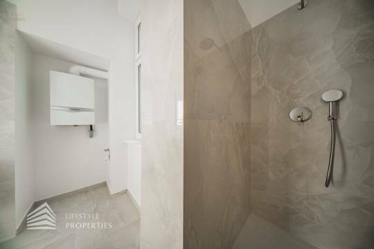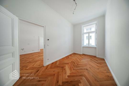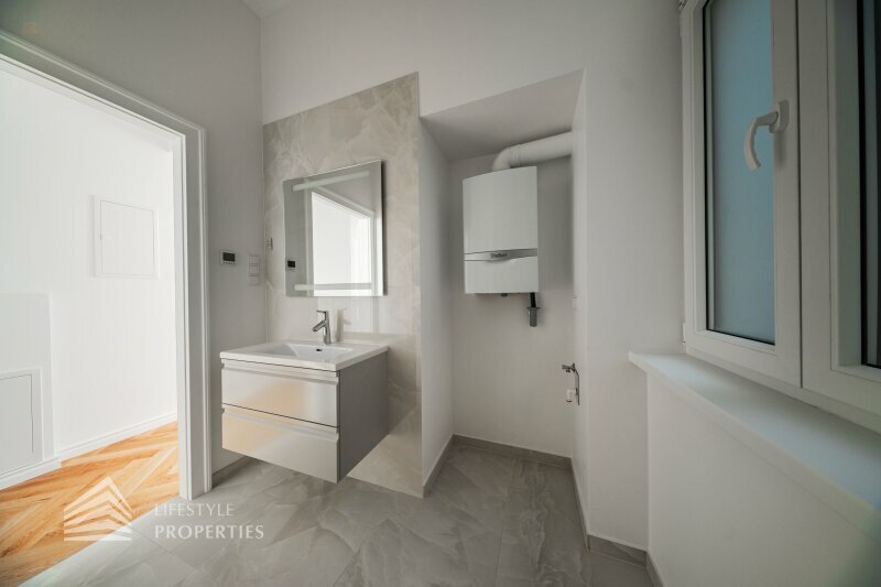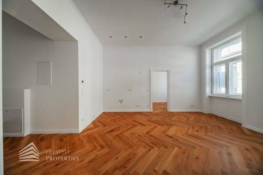Die Wohnung befindet sich im 1. Stock eines schönen Stilaltbaus aus dem Jahr 1897, ist ein Erstbezug und gliedert sich in einen Vorraum, eine Wohnküche, zwei Zimmer, ein Badezimmer und ein separates WC.