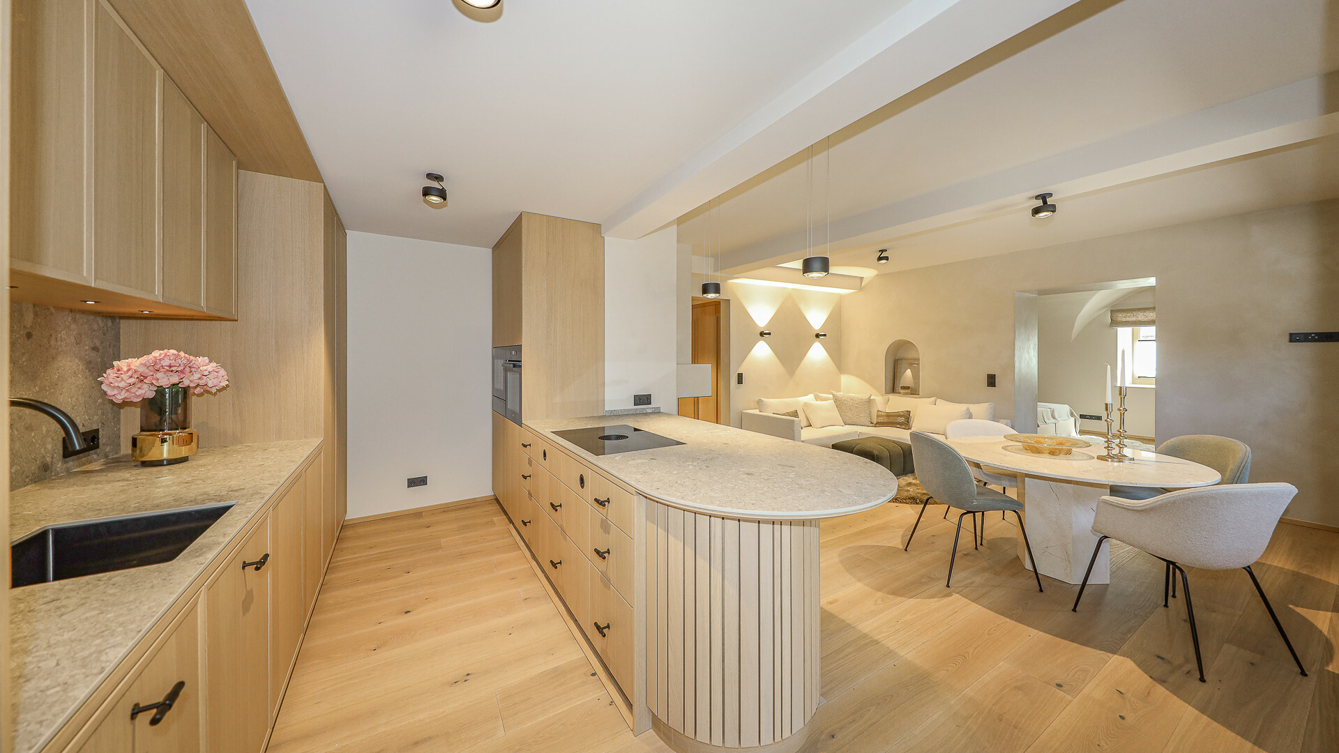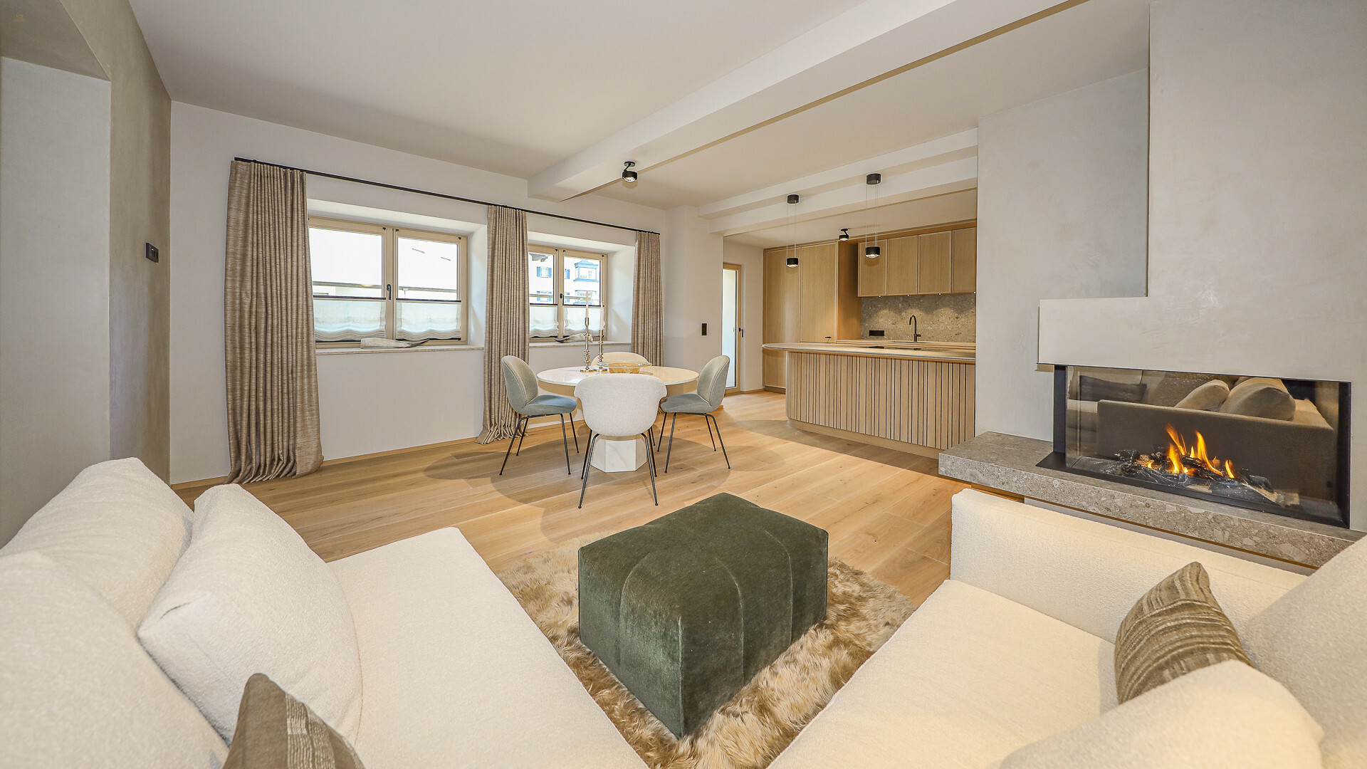 Zum Verkauf steht eine äußerst exklusive Wohnung in einem historischen Stadthaus mitten im Zentrum von Kitzbühel.
