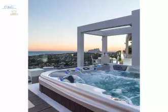 +++ SOFORT EINZIEHEN +++ Diese Luxusvilla im Ibiza Stil wurde im Jahr 2014 fertiggestellt. Die Villa erstreckt sich über 3 Etagen. Ganz oben auf der Dachterrasse befindet sich der Chillout Bereich mit Jacuzzi, BBQ, Außendusche, Wasserfall, und viel Liegefläche. Im Hauptgeschoss befindet sich das Wohnzimmer mit Essbereich und Küche sowie das Masterbedroom des Hauses mit Ankleide und eigenem Bad. Im unteren Stockwerk befinden sich 3 weitere Schlafzimmer, ein Fitnessbereich sowie ein weiterer Jacuzzi. Insgesamt verfügt die Villa über 4 Schlafzimmer und 4 Badezimmer. Besonders hervorzuheben ist die einzigartige und unverbaubare Meersicht. Die Villa verfügt über 480 m2 Terrassenfläche. Auf dem Grundstück können 2 Fahrzeuge parkiert werden.