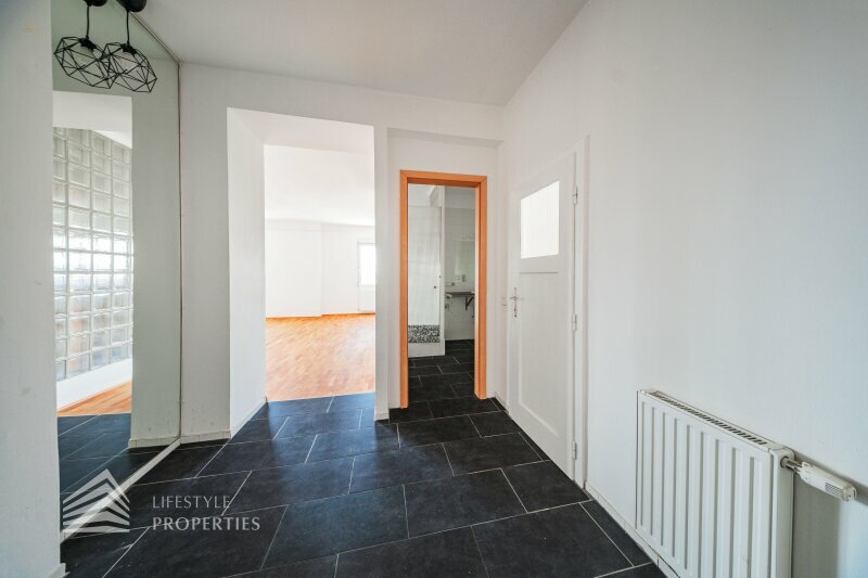 Die Wohnung befindet sich im DG eines schönen Stilaltbaus aus dem Jahr 1897 und gliedert sich in einen Vorraum, eine Wohnküche, ein Zimmer und ein Kabinett, ein Badezimmer und ein separates WC.