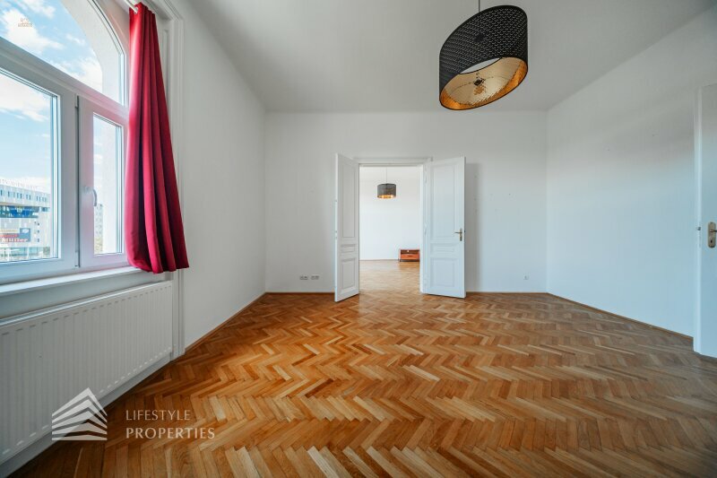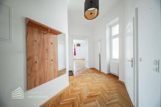 Die Wohnung befindet sich im 4. Stock eines schönen Stilaltbaus aus dem Jahr 1897 und gliedert sich in einen Vorraum, ein Wohnzimmer, ein Zimmer, eine Küche, ein Badezimmer und ein separates WC.