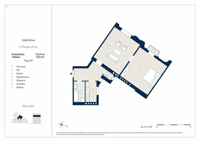 Sie betreten die Wohnung und befinden sich im Vorraum, gerade durch gelangen Sie in das geräumige Wohnzimmer. Das Schlafzimmer ist über den Salon begehbar. Das Bad ist mit einer Badewanne, einem Handwaschbecken, einem Waschmaschinenanschluss und einem Handtuchtrockner ausgestattet. Die Küche und das separate WC sind ebenfalls vom Vorraum erreichbar. Die Wohnräume sind mit schönem Parkett ausgestattet und die Nassräume sind verfliest.