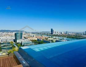 - Eine wunderschöne Gemeinschaftsterrasse mit atemberaubendem Blick auf die ganze Stadt und Pool! Also genießen Sie einen Wellnessbereich am Rooftop inklusive spektakulärem Outdoor-Pool mit Außenterrasse, Fitnessraum, Panorama-Sauna mit Relax-Bereich sowie traumhaftem Ausblick über Wien.