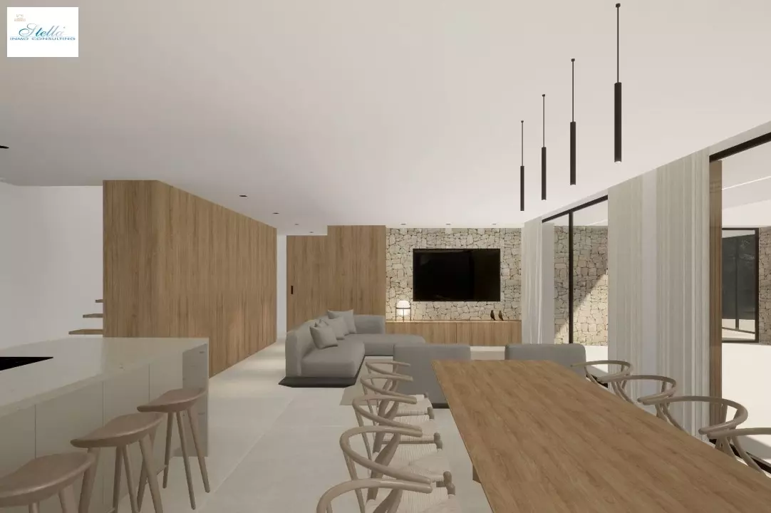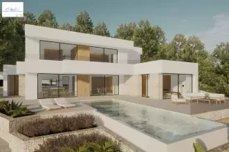 Projekt. Beeindruckende NeubauVilla zum Verkauf in Moraira.Diese schöne, moderne Villa wird in der beliebten Pla del Mar Gegend gebaut. In ca. 1 km Entfernung befindet sich das schöne Zentrum von Moraira mit seinen Geschäften, Terrassen und Annehmlichkeiten. Die attraktive Bucht von El Portet ist 1,2 km entfernt. Die Villa hat einen gewissen Meerblick und eine SüdWestAusrichtung. Das Haus wird 3 Etagen haben. Im Erdgeschoss (PoolEbene) ist der Eingang zur Villa. Wir betreten eine schöne Halle mit GästeWC. Unmittelbar rechts betreten wir das geräumige WohnEsszimmer mit angrenzender offener Küche und Speisekammer. Auf dieser Etage befindet sich auch das Hauptschlafzimmer. Dieses Zimmer verfügt über ein geräumiges Bad ensuite und einen eigenen Ankleideraum. Schließlich gibt es noch ein zweites Schlafzimmer mit eigenem Bad. Über eine Treppe oder einen Aufzug gelangt man in das Obergeschoss, wo sich 2 weitere Schlafzimmer ensuite befinden. Beide mit direktem Zugang zu einer privaten Terrasse. Im Untergeschoss befindet sich ein großer Mehrzweckraum, eine separate Toilette, ein Fitnessraum, ein Kino und eine Waschküche. Auf dieser Ebene finden wir auch die Garage. Durch die Anwendung von großen Fenstern, hat die Villa viel natürliches Licht. Features: Fußbodenheizung, Klimaanlage (leitet), Doppelverglasung, Sicherheitstür, Wärmepumpe, Sonnenkollektoren, Aufzug, Bosch Marke Küchengeräte und automatische Eingangstor.Draußen erwartet Sie ein schöner 35m2 großer InfinityPool. Der Pool ist mit einer Abdeckung und automatischen Sonnenschutzvorrichtungen versehen. Der Garten mit mediterranen Pflanzen und automatischer Bewässerung ist bereits angelegt. Neben der Garage gibt es auch 2 Parkplätze auf dem Privatgrundstück. Diese schöne Villa zum Verkauf in Moraira ist perfekt für den dauerhaften Aufenthalt. Ausgestattet mit allen Annehmlichkeiten und nur wenige Gehminuten von Moraira entfernt. Interessiert an dieser komfortablen neuen Entwicklung Fragen Sie uns für weitere Informationen.Der angegebene Preis enthält keine Steuern und Kaufkosten / Das Angebot gilt vorbehaltlich von Irrtümern, Preisänderungen, Verfügbarkeit, Unterlassung und / oder Rücktritt vom Markt ohne Vorankündigung / Möbel und Inhalte nach individueller Vereinbarung und nicht nach den Fotos in der Präsentation