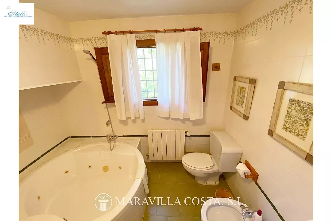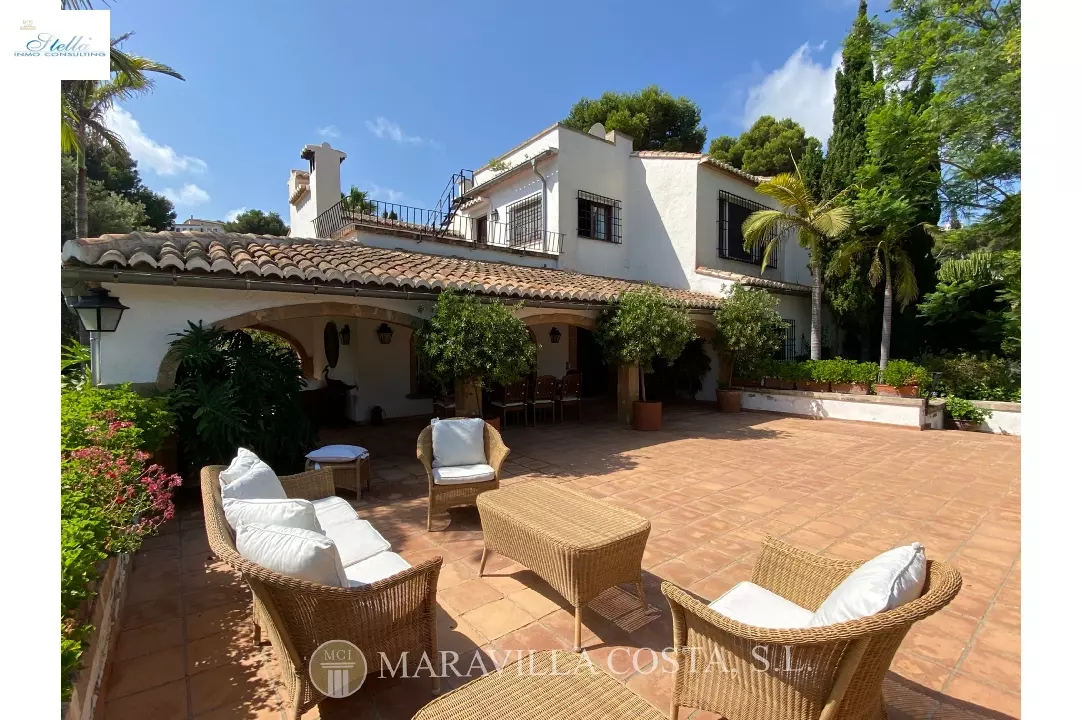 Diese sehr grosszügige Villa mit ihrem wunderschönen, sehr gepflegten, grossen Garten befindet sich in der ausgesuchten Gegend El Tosalet in Jávea. Sie liegt nur wenige Minuten vom Strand und allen Annehmlichkeiten entfernt und bietet viel Platz für eine grosse FamilieIm Erdgeschoss befinden sich drei Schlafzimmer mit Einbauschränken und zwei geräumige Badezimmer, der offene Wohn/Essbereich mit Kamin und direktem Zugang zu der grossen, teils überdachten Terrasse. Weiterhin befindet sich hier die helle, neue und komplett ausgestattete Küche, neben dieser ein weiteres Schlafzimmer mit eigenem Bad, ideal z.B. für Hauspersonal. Das Obergeschoss hat Zugang sowohl im Haus, als auch einen separaten Zugang von aussen und ist somit perfekt als eigene Wohneinheit zu nutzen. Hier befindet sich eine äusserst grosszügiges Schlafzimmer mit eigenem, offenen Kamin, Ankleide und Bad en suite mit Jacuzzi, ein weiteres Schlafzimmer, ein Bad und ein geräumiger Wohnbereich, von dem aus man zur Dachterrasse gelangt, welche einen sehr schönen Blick übers Tosalet hin zum Meer bietet.Die Villa ist mit Heizung, Klimaanlagen und einer Alarmanlage ausgestattet.Der Poolbereich ist mit einer sehr gepflegten, grossen Rasenfläche und vielen mediterranen, gut eingewachsenen Pflanzen umgeben, ein überdachter Barbereich, ein BBQ und ein PaddelPlatz komplettieren den Aussenbereich. Für die Fahrzeuge stehen sowohl eine grosse Doppelgarage als auch ein Carport und weitere Aussenstellplätze zur Verfügung.Alle Daten der hier publizierten Immobilien beruhen auf Angaben der Eigentümer, für deren Richtigkeit übernehmen wir keine Haftung.