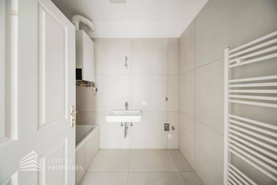 Sie betreten die Wohnung und befinden sich im Vorraum, geradeaus befindet sich das Wohnzimmer und eines der Schlafzimmer. Beim Vorraum rechts befindet sich die Küche und der Essbereich. Von hier gelangen Sie auch in die anderen zwei Zimmer. Das Bad ist mit einer Wanne, einem Waschbecken, einem Handtuchtrockner und einem Waschmaschinenanschluss ausgestattet. Die separate Toilette befindet sich im Vorraum.