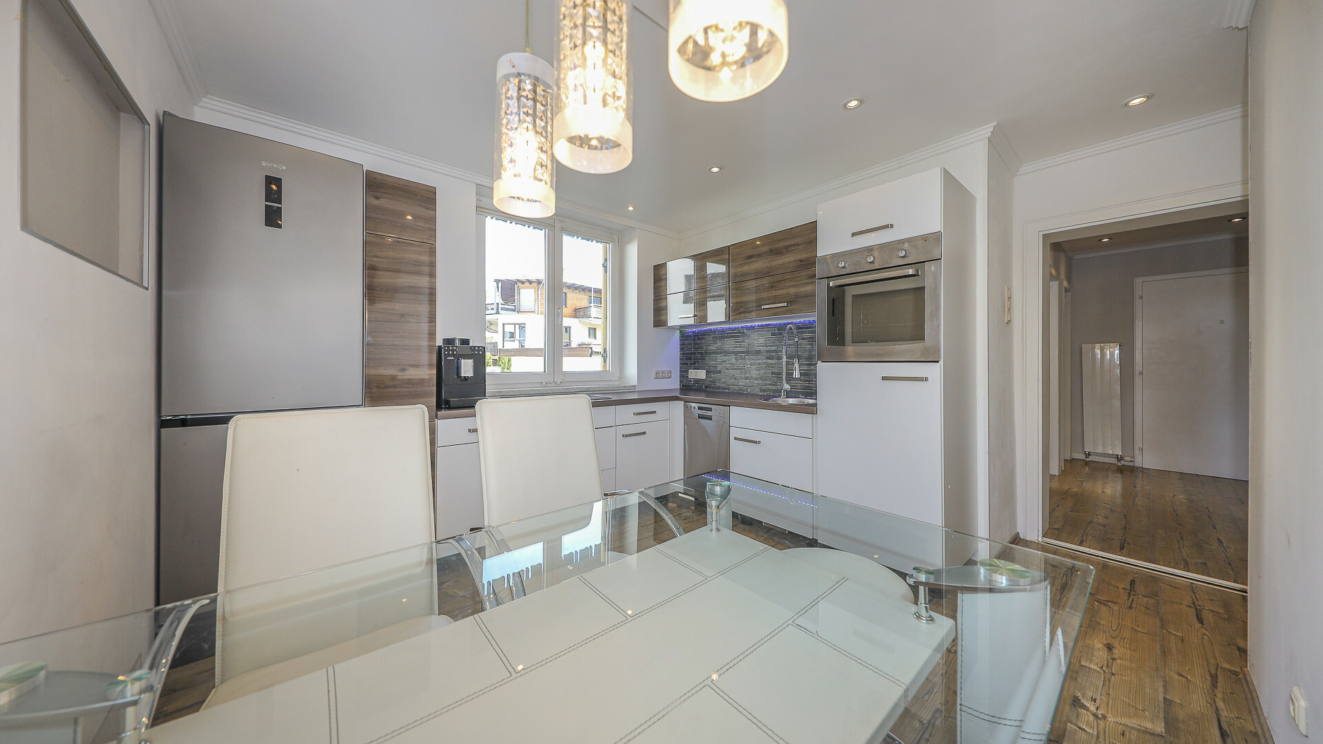 2008/10 wurde die Wohnung saniert. Dabei wurden unter anderem die Böden, das Bad, die Küche und die Fenster erneuert.