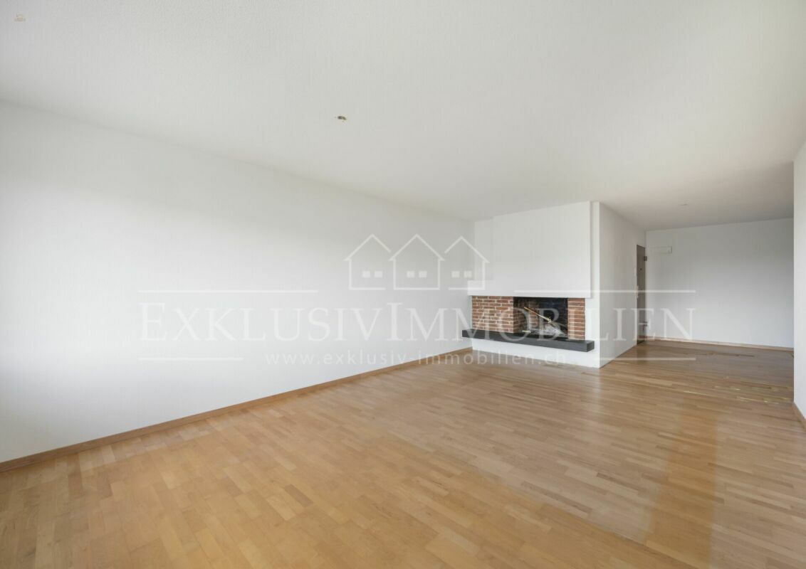 Grosszügige Fenster, ein gemütliches Cheminée und warme Materialien schaffen eine helle und freundliche Atmosphäre. Auf der sonnigen Terrasse mit rund 27 m² geniessen Sie entspannte Stunden mit Teilblick auf den See und Aussicht zum Pfannenstiel.
