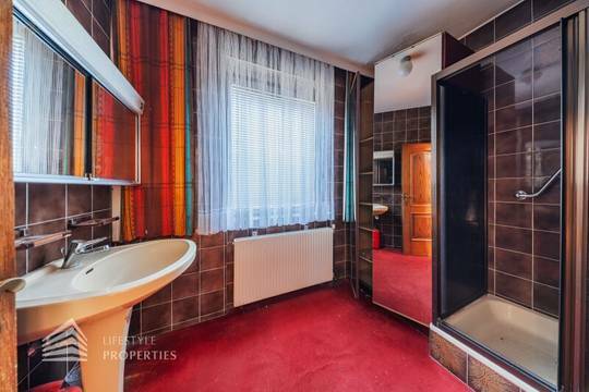 Das massiv errichtete Haus (Porotherm 38/30 cm) verfügt über eine Gesamtnutzfläche von ca. 554 m² und bietet ein großzügiges Raumangebot auf drei Ebenen, Vollkeller, Erdgeschoss, Obergeschoss, sowie einen ausbaufähigen Dachboden, welcher zusätzliches Potenzial für Wohnraum oder Stauraum bietet.
