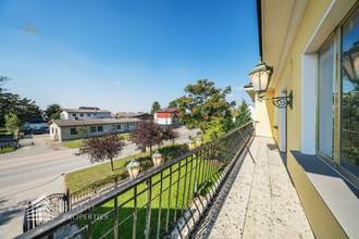Das Obergeschoss mit einer Fläche von ca. 185 m² teilt sich in einen großen Vorraum, Dusche/WC sowie fünf geräumige Zimmer, zwei davon mit Balkonzugang (Balkon ca. 12 m²), auf.