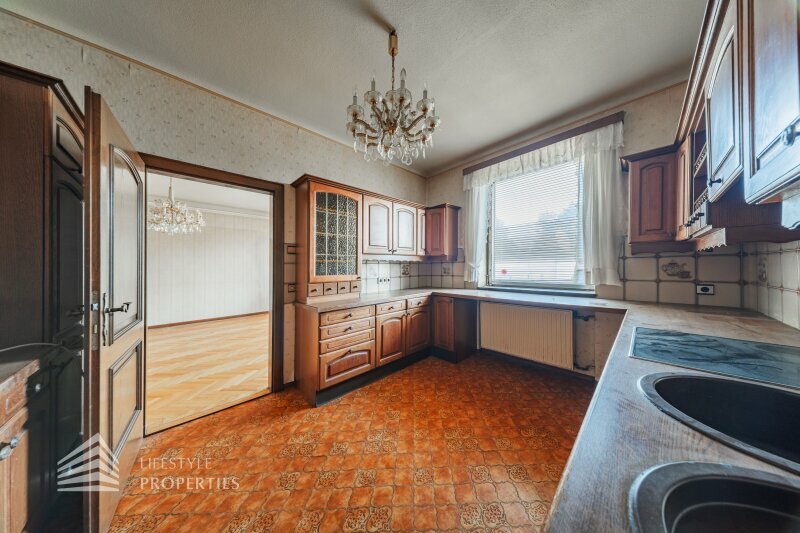 Das traumhafte Haus aus dem Jahr 1970 besticht durch seine nicht alltägliche Architektur und erstklassige Bauqualität. Schon damals ein echtes Herzeigeobjekt, präsentiert es sich dank der hochwertigen Materialien und fachgerechten Ausführung heute noch in nahezu neuwertigem Zustand. Das Grundstück umfasst ca. 1.145 m² und ist rechteckig sowie eben verlaufend. Zur Straßenseite hin ist es mit einem schmiedeeisernen Zaun eingefriedet, seitlich durch Naturzäune und Gartenmauern begrenzt. Ein Brunnen für Brauchwasser und Gartenbewässerung ist vorhanden. Die Lage ist ruhig, sonnig und von viel Grün umgeben, was für eine hervorragende Luftqualität sorgt. Zusätzlich steht ein Nebengebäude mit Garage und Lagerbereich zur Verfügung.