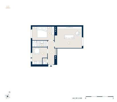 Sie betreten die Wohnung und befinden sich im Vorraum. Gerade durch gelangen Sie in das Schlafzimmer. Rechterhand befindet sich das Wohnzimmer. Die Küche ist voll ausgestattet und bietet Platz für einen Tisch. Das Bad ist mit einer Dusche und einem Waschbecken ausgestattet. Das separate WC ist auch vom Vorraum erreichbar.