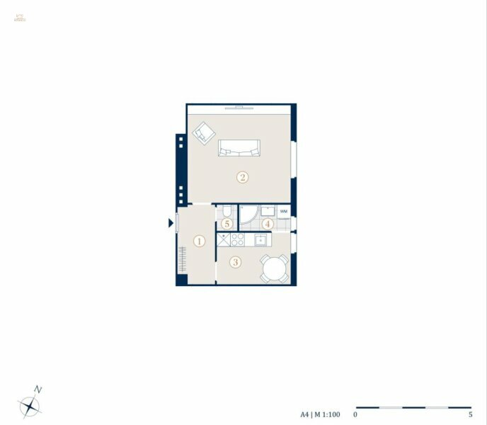 Die Wohnung gliedert sich in einen Vorraum, einen Wohn- Schlafraum, eine Küche, ein Badezimmer und ein separates WC.