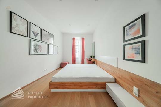 Diese hochwertige 3-Zimmer-Eigentumswohnung befindet sich im 2. Liftstock eines vor ungefähr 5 Jahren sanierten Hauses. Die Wohnung bietet auf ca. 75 m² Wohnfläche modernen Komfort, ergänzt durch einen Balkon von ca. 8 m² mit Wasseranschluss zum ruhigen Innenhof. In puncto Ausstattung überzeugt diese Wohnung mit hochwertigen Materialien und technischer Raffinesse: Ein eleganter Tarkett-Boden in allen Wohnräumen verleiht Wärme und Harmonie. Vollholztüren und dezente Designakzente schaffen eine warme Atmosphäre. Das Beleuchtungskonzept mit dimmbaren Zonen unterstreicht das moderne Raumgefühl, während deckenintegrierte Vorhangsysteme mit maßgeschneiderten Stoffen eine harmonische Einheit ergeben. Die Küche ist nach Maß gefertigt und ausgestattet mit Geräten namhafter Hersteller sowie hochwertigen Armaturen. Eine Split-Klimaanlage mit Außeneinheit sorgt für angenehme Temperaturen. Die Wohnung wurde kürzlich frisch ausgemalt und ist sofort bezugsfertig. Beheizt wird mittels Gas-Fußbodenheizung.