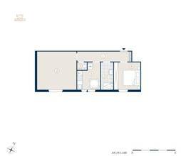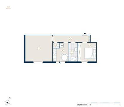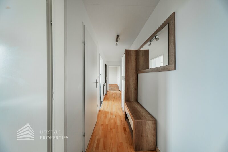 Sie betreten die Wohnung und befinden sich im Vorraum. Gerade durch gelangen Sie in das Schlafzimmer. Im Flur weiter gelangen Sie in die voll ausgestattete Küche, von hier gelangen Sie auch in das Bad. Dieses ist mit einer Dusche und einem Waschbecken ausgestattet. Am Ende des Gangs befindet sich der helle Wohnraum. Das separate WC ist auch vom Vorraum erreichbar.