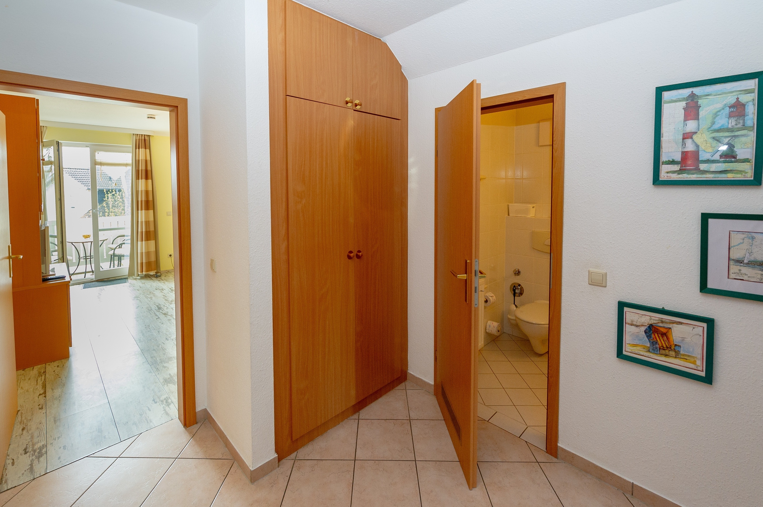 Das angebotene 2-Raum-Appartement im zweiten Obergeschoss überzeugt durch seine Südwest-Ausrichtung und den überdachten Balkon, der zum Entspannen in der Sonne einlädt. Auf einer Wohnfläche von ca. 35,28 m² präsentiert sich die Wohnung mit einem funktional und zugleich gemütlich gestalteten Grundriss. Der offene Wohn- und Essbereich mit charmanten Dachschrägen vermittelt eine angenehme Wohnatmosphäre und ist mit einer komplett ausgestatteten Küchenzeile (Kühlschrank mit Gefrierfach, Mikrowelle, 2-Platten-Herd, Kücheninventar) versehen. Ein Esstisch für vier Personen, ein Schlafsofa, Flachbild-TV und Mini-Stereoanlage komplettieren die Einrichtung. Das Schlafzimmer bietet Platz für ein Doppelbett nebst Kleiderschrank und sorgt mit seiner ruhigen Lage für erholsamen Schlaf. Das hell geflieste Duschbad mit wirkt freundlich und gepflegt. Die Wohnung wird voll möbliert übergeben – ein sofortiger Bezug oder eine direkte Vermietung ist somit problemlos möglich. Die Böden sind teils gefliest, teils mit modernem Belag in heller Landhausdielenoptik ausgestattet. Ein PKW-Stellplatz sowie ein eigener Kellerraum sind im Kaufpreis inbegriffen. Darüber hinaus stehen ein Fahrradkeller, Münzwaschmaschine, und -trockner zur gemeinschaftlichen Nutzung und ein Spielplatz zur Verfügung. Ob als renditestarke Ferienimmobilie oder zur zeitweisen Eigennutzung – dieses Appartement überzeugt durch seine attraktive Lage, die gepflegte Anlage und ein angenehmes Wohnambiente.