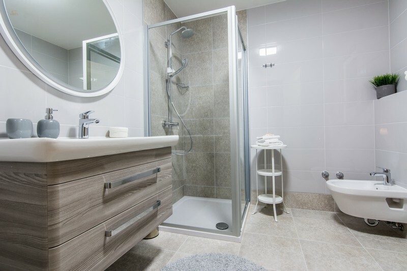 1.Stock: drei Schlafzimmer mit Kleiderschrank, drei Badezimmer, Waschküche und ein Balkon.