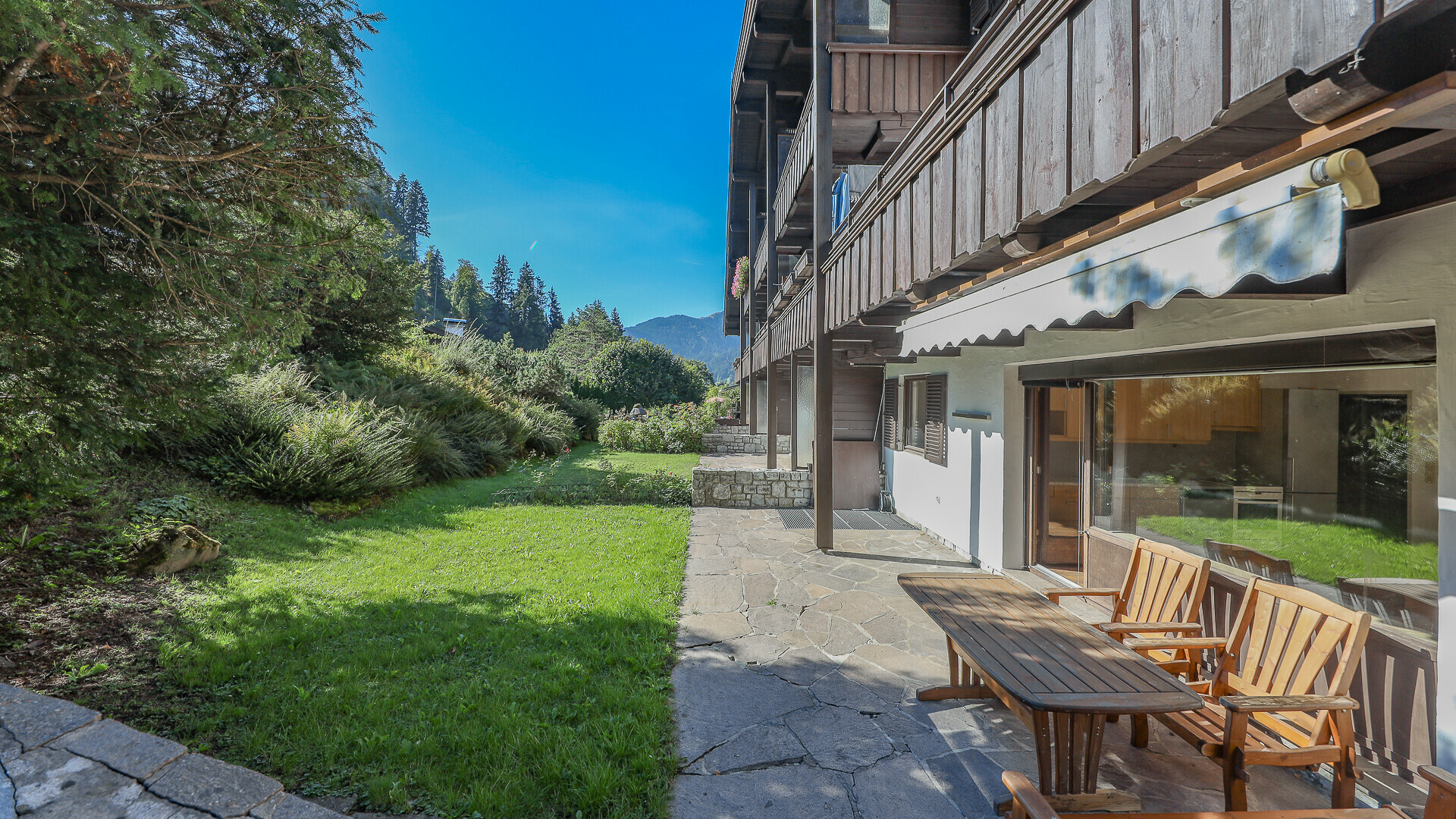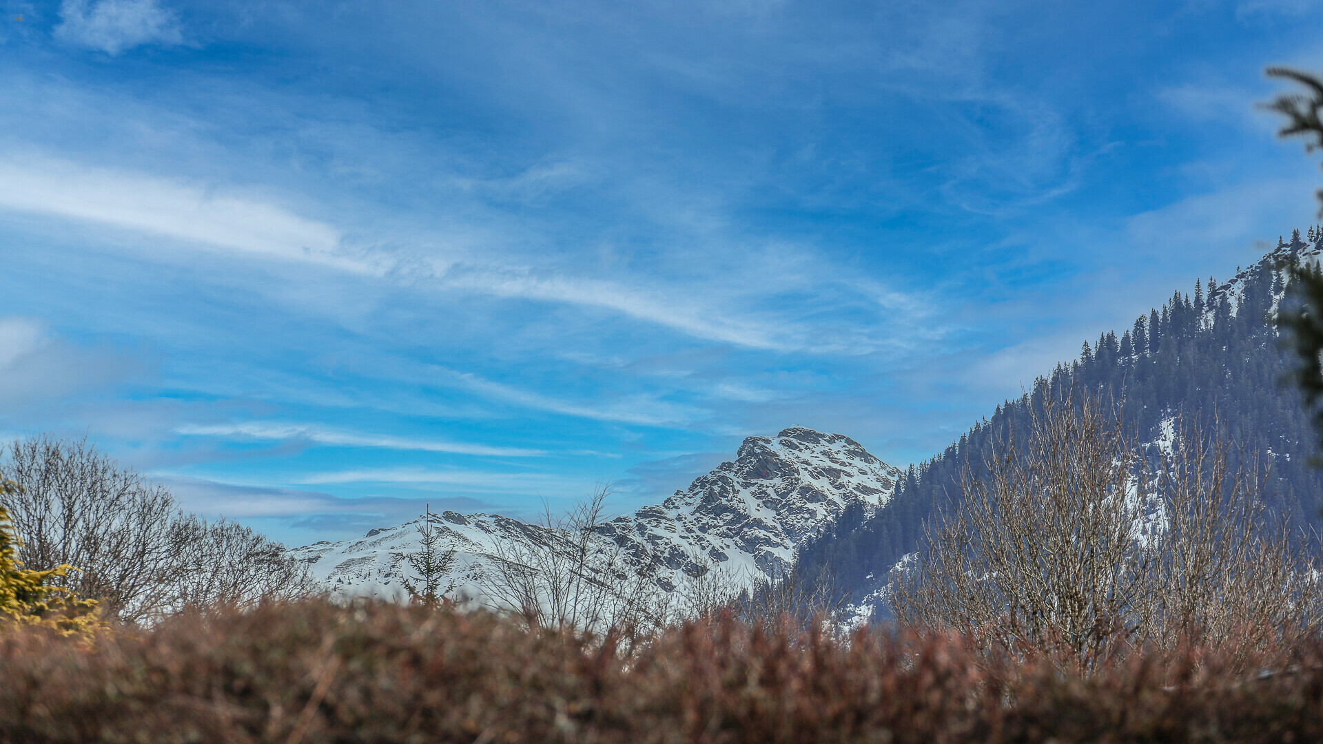Vom Wohnraum und der ca. 28 m² großen teilweise überdachten Terrasse hat man einen schönen Ausblick auf die Bichlalm und die Südberge.