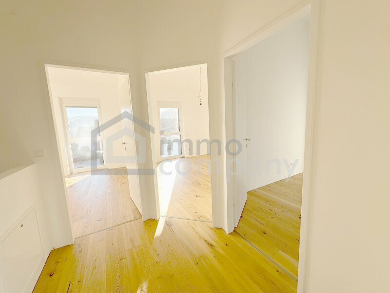 Vorraum, WC, großzügige Wohnküche mit offenem Wohnbereich, direkter Ausgang auf die Terrasse mit Eigengarten.