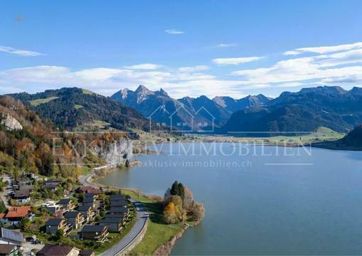 Direkt am Ufer des Sihlsees entsteht Neubauprojekt VISALPIN, ein exklusives Wohnensemble mit 10 stilvollen Einfamilienhäusern, 6 grosszügigen Doppeleinfamilienhäusern und einer repräsentativen Villa.