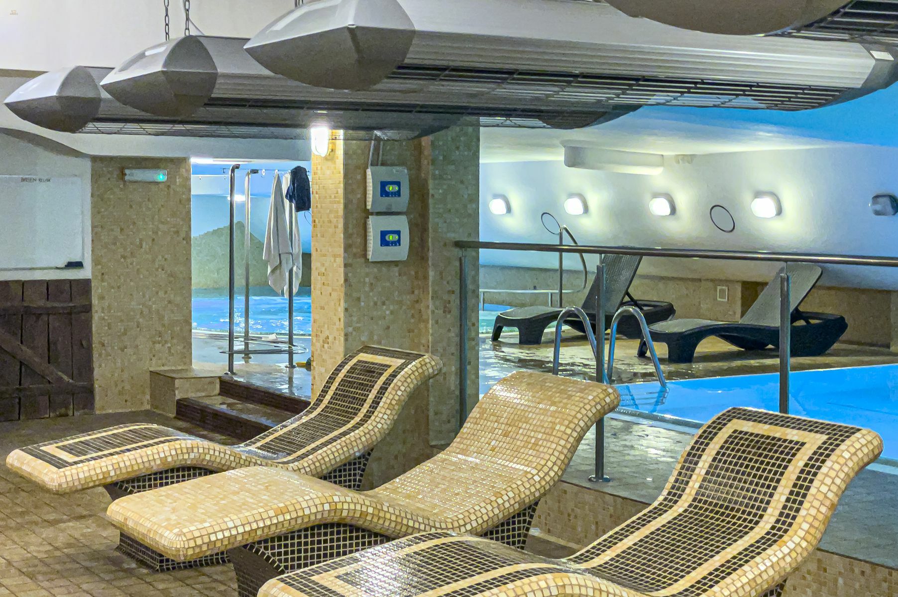 Der Spabereich bietet neben zwei Pools, einen Whirlpool, Sauna, Dampfbad sowie eine Salzgrotte. Das Hotel bietet zudem diverse Kosmetik- und Wellnessangebote wie Massagen, Maniküre usw.