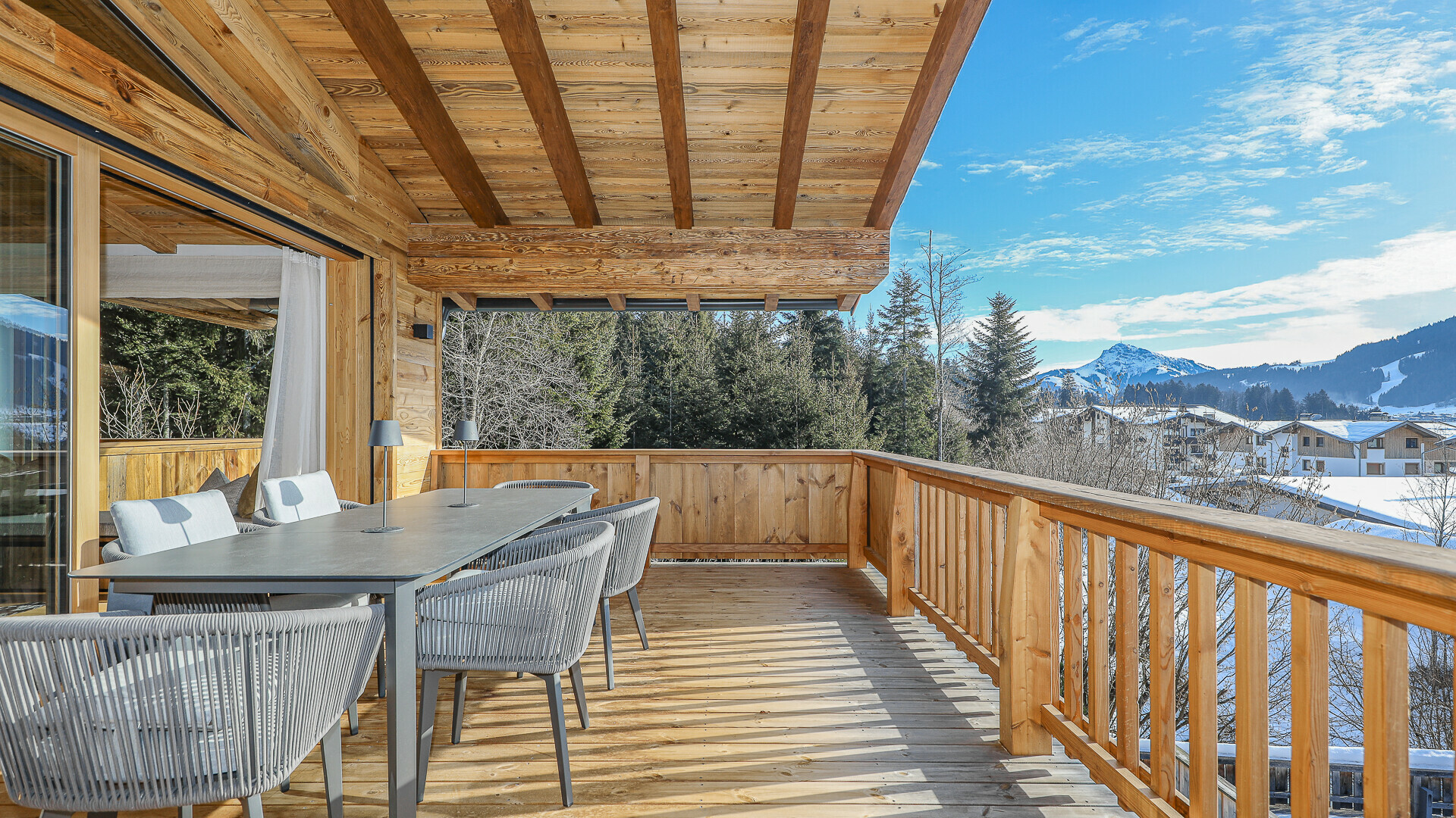 Die zwei Terrassen bieten einen wunderschönen Ausblick auf das Kitzbüheler Horn sowie den Wilden Kaiser.