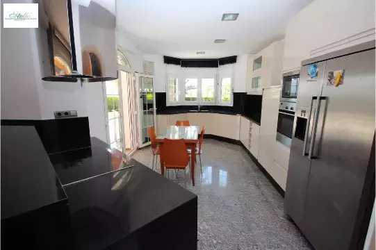 Diese spektakuläre Villa befindet sich auf der Sonnenseite des Naturparks Montgó mit freiem Blick und einer guten Portion Land. Das Äußere bietet viel Platz für verschiedene Aktivitäten. Es verfügt über einen großen Infinity-Pool, einen schönen, pflegeleichten Garten, einen Spielplatz, eine Außenküche, einen japanischen Garten, einen überdachten Bereich für Veranstaltungen, etc. Das Haus besteht aus zwei Ebenen. In der Ersten gibt es 2 Schlafzimmer, Waschküche, Einbauküche mit Essbereich, ein großes Wohnzimmer mit großen Fenstern, die sich zu der Terrasse öffnen und Sie zum Poolbereich führen. Auf der zweiten Ebene befinden sich zwei weitere Schlafzimmer mit atemberaubender Aussicht und ein Balkon. Die 4 Bäder sind mit bester Qualität ausgestattet. Das Haus hat viele Details, die die hohe Qualität und den guten Geschmack des Hauses belegen. Das Haus ist lichtdurchflutet und hat seinen eigenen Charakter.