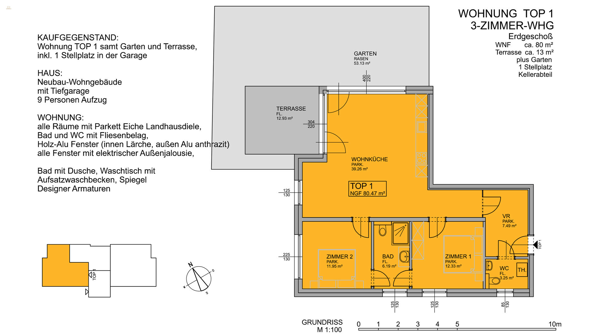 - Top 1 (EG) ca. 80 m² WNF, 2 Schlafzimmer, 1 Badezimmer € 1.490.000,-