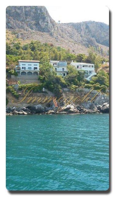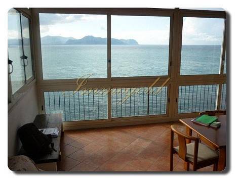 Die unabhängige drei Zimmer Wohnung hat darunter einen eigenen Eingang und eine kleine Terrasse mit Meerblick; privater Zugang zu Badeklippen unterhalb der Villa. Ganz neu renoviert; spektakulär direkt am Wasser; sehr ruhig; Wohn- und Schlafzimmer mit Superpanorama, eingebettet in der duftenden Flora des Mittelmeeres; Klimaanlagen; am Hang gelegen, für kleine Kinder nur bedingt geeignet; Zugang zu der Wohnungen über eine bequeme Treppe. Eigener Parkplatz auf dem Grundstück; Internet! Eingangsbereich mit Wohnzimmer und großer Fensterfront in Richtung Südwesten, grandioser Meerblick, im Hintergrund Palermo mit seinen Vorgebirgen; Sitzecke; Klimaanlage; von hier führt ein Flur zu den anderen Zimmern. Großes, helles Schlafzimmer mit Doppelbett und Einbauschrank; Daneben ist die Küche mit Einbaumöbeln; Waschmaschine; kleine Terrasse auch zum Wäsche-Aufhängen; weiteres kleines Schlafzimmer mit Stockbett und Oberlicht in Richtung Flur. Kein Außenfenster. Eigentlich ideal für 2 Personen aber es gibt halt vier Schlafplätze.