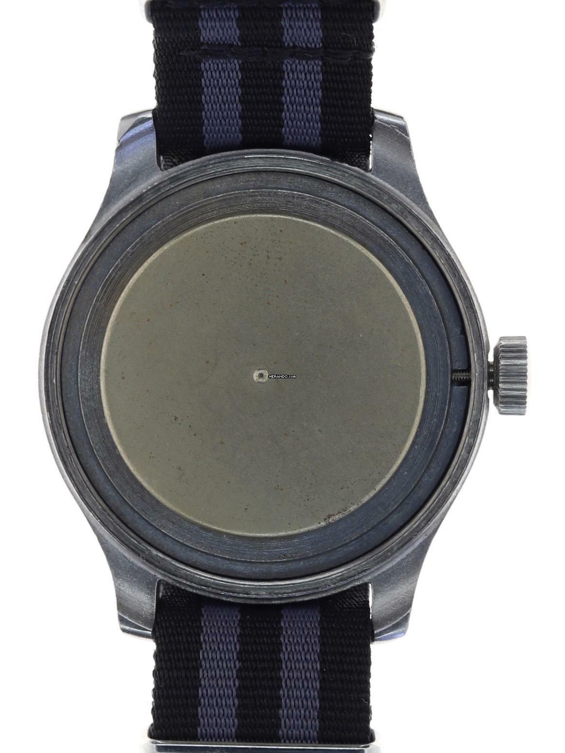 Zifferblatt: schwarzes originales Zifferblatt, arabische Ziffern ( Radium ), Leuchtpunkte ( Radium ), original Stahl-Leuchtzeiger ( Radium ), Hilfssekunde, breiter Pfeil