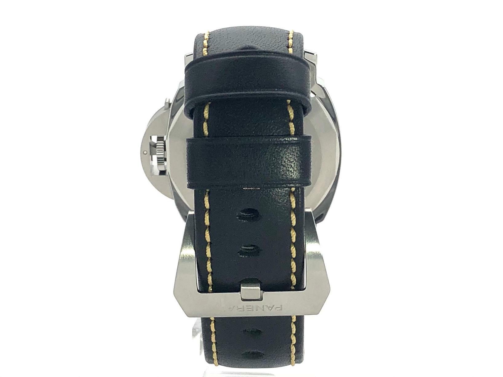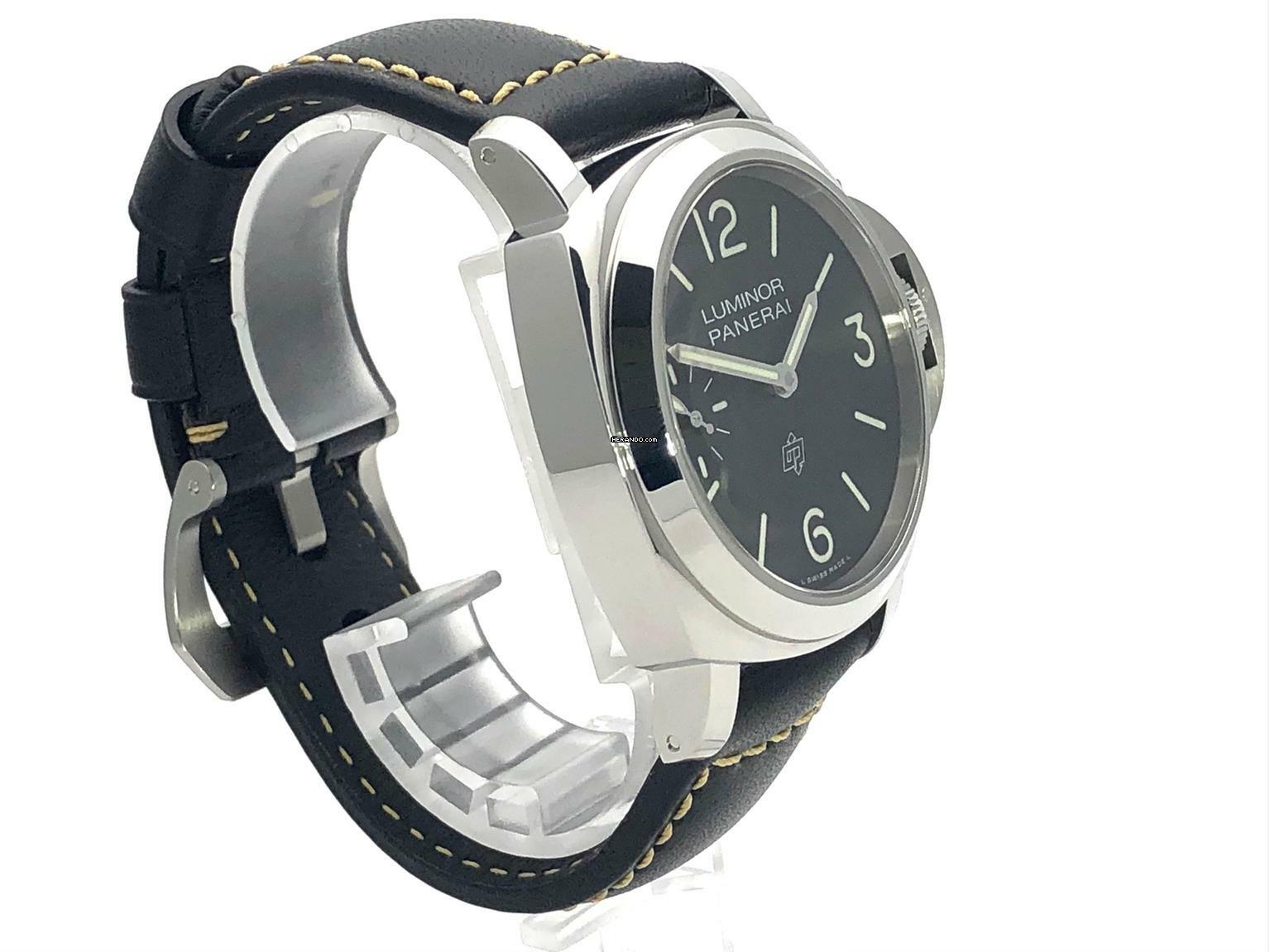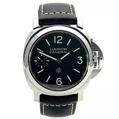 Gehäuse aus Edelstahl poliert, Gehäusedurchmesser 44 mm, Lünette aus Edelstahl poliert, schwarzes Lederarmband mit Dornschließe aus poliertem Edelstahl, schwarzes Zifferblatt mit arabischen Leuchtziffern und Stundenmarkierungen, Mechanisches Uhrwerk mit Handaufzug, Kaliber Panerai P.6000 mit 19 Steine, Schwingung 21.600 A/h., Gangreserve 72 Stunden, kleine Sekunde, entspiegeltes Saphirglas, Edelstahlboden, Wasserdicht bis zu 10 bar.