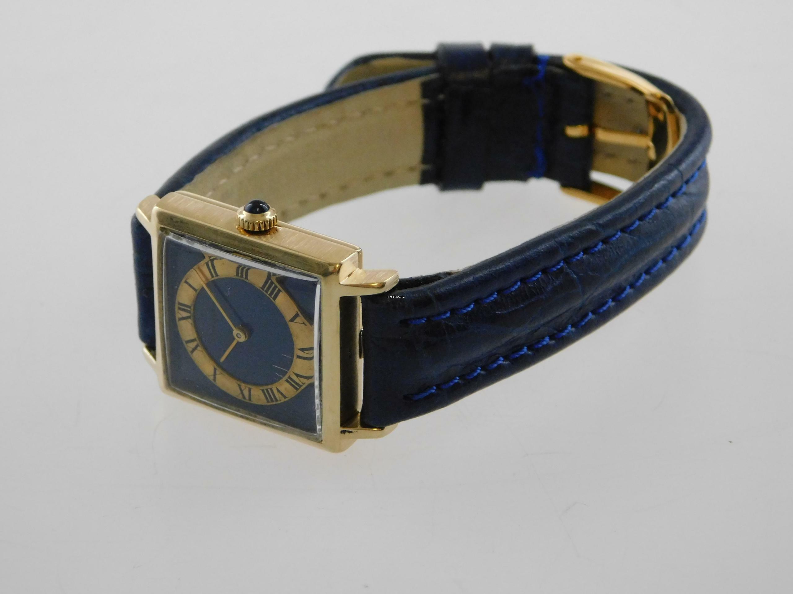 Jaeger-LeCoultre Classic Cocktail Watch Lapis Damenuhr Vintage massiv 18 Karat Gelbgold mit Lederband