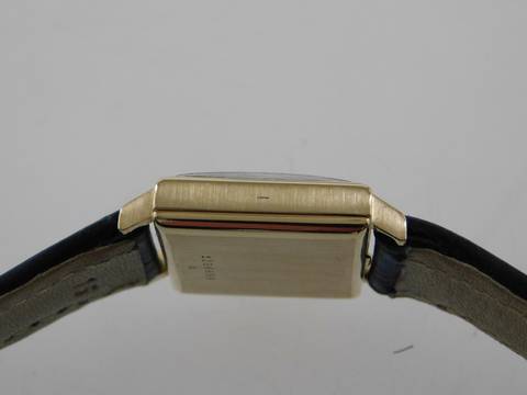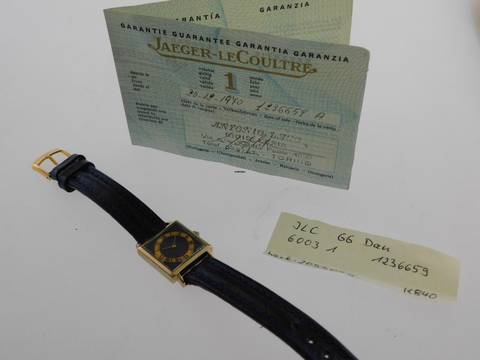 Jaeger Le Coultre Damenuhr massiv 18 Karat Gelbgold mit neuem neutralen Lederband Cocktail Watch mit original JLC Papieren
