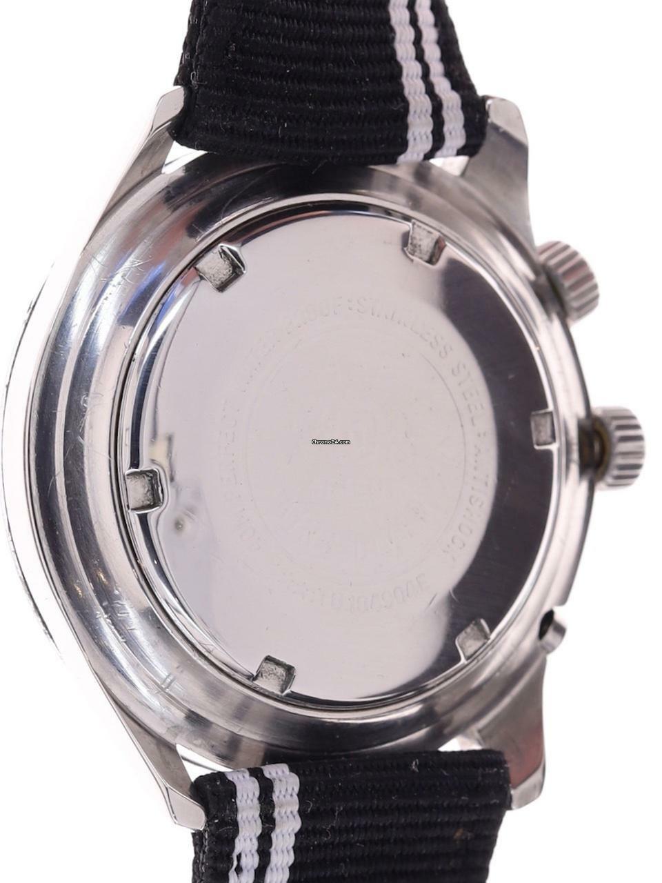 Gehäuse / Ref.: großes Metallgehäuse, verschraubter Edelstahlboden, Ref. 0.104.904E, Krone bei " 4 " um die innere Lünette zu bewegen