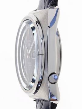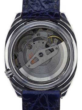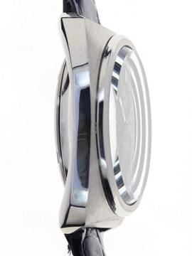 Band / Schließe: blaues passendes neutrales Lederband, unbenutzt, mit unsignierter Edelstahl-Dornschließe, Lederband wurde später hinzugefügt