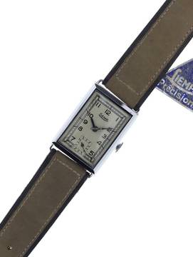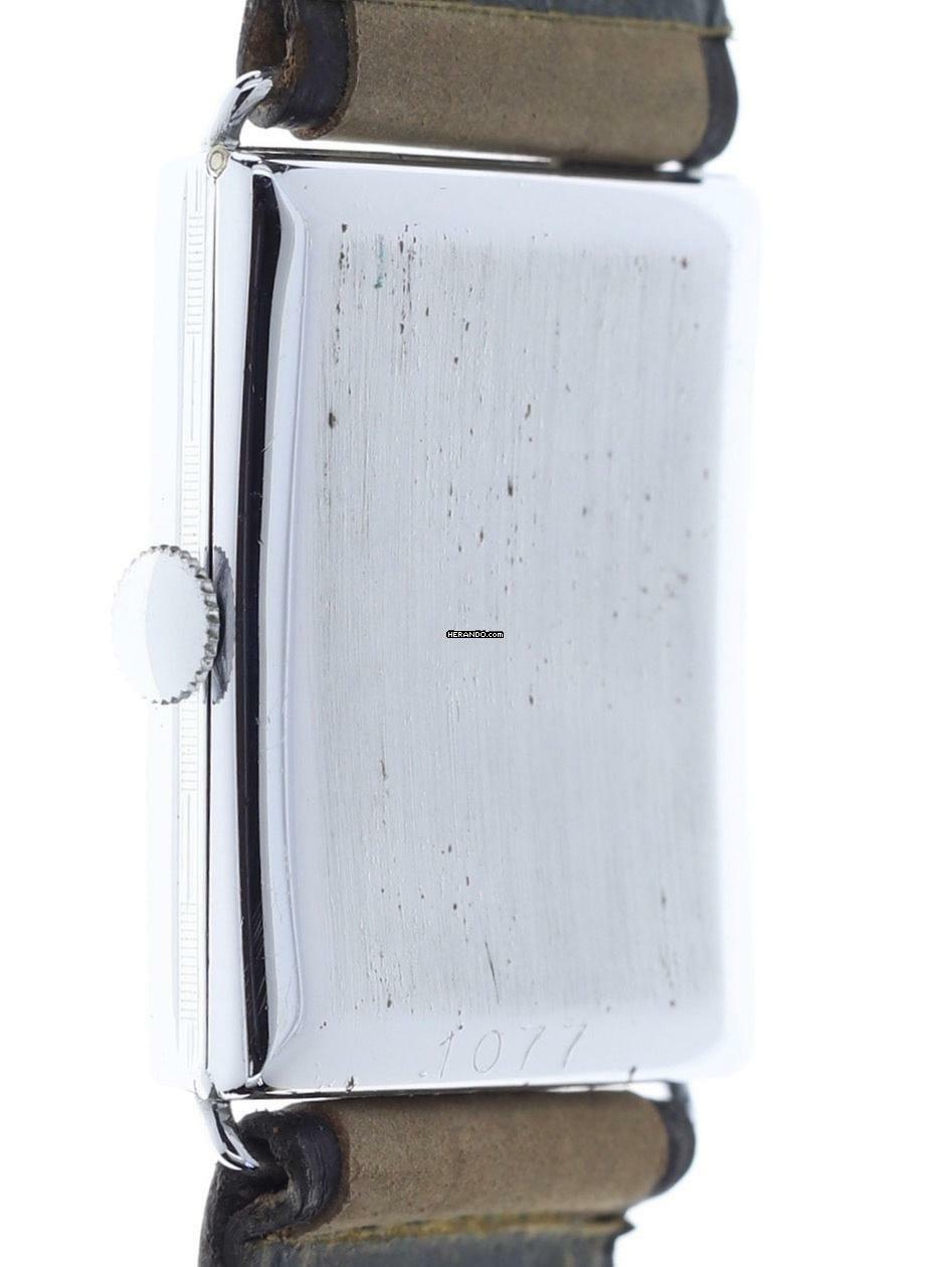 Zifferblatt: 2-farbig versilbertes Originalzifferblatt, schwarze Markierungen und arabische Ziffern, gebläute Stahlzeiger, Hilfssekunde