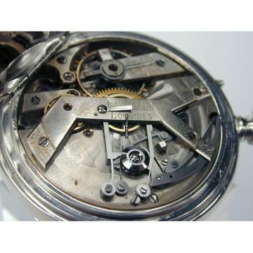 Longines Zangenchronograph offene Silber Taschenuhr von 1878
