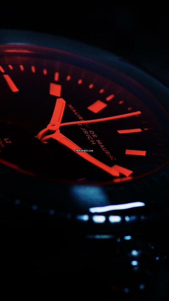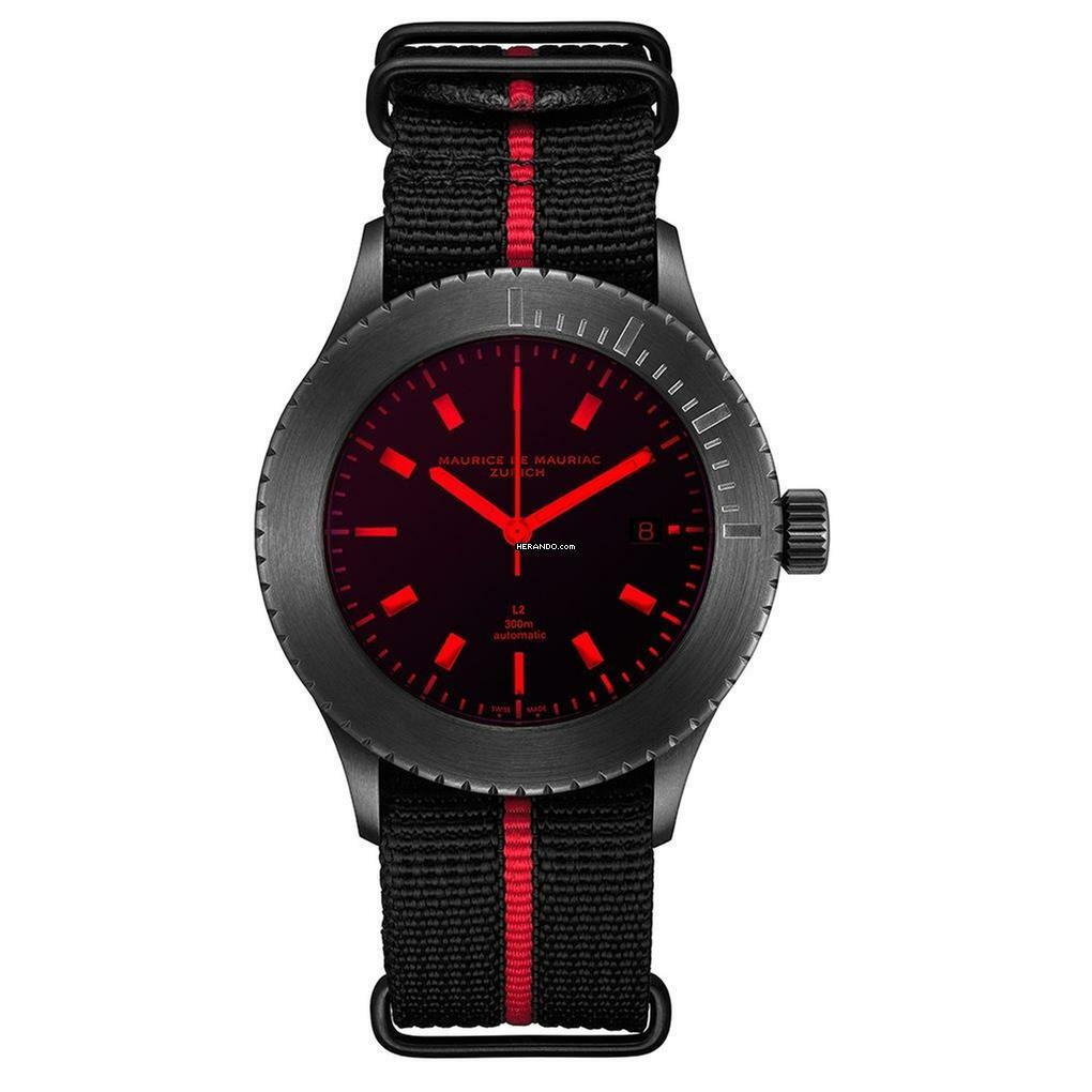 “Die L2 ist eine Taucheruhr, die unter Wasser grossen Druck aushält. Und an Land als Hingucker überzeugt. Der 316L-Edelstahl des Gehäuses mit der Diamond-like Carbon Beschichtung reflektiert das Licht mit souveräner Härte, das ETA 28.24-2 Uhrwerk ist von hoher Zuverlässigkeit, das Design von Fabian Schwaerzler von den Werten des Bauhauses durchdrungen. Und aussergewöhnlich ist natürlich das rote Uhrenglas, dass die Uhr zu einem energiegeladeneren Statement macht. Typisch Maurice de Mauriac.”