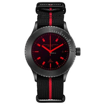“The L2 is a diving watch that can withstand high pressure under water. And convincing on land as an eye-catcher. The 316L stainless steel of the case with the diamond-like carbon coating reflects the light with supreme hardness, the ETA 28.24-2 movement is extremely reliable, and the design by Fabian Schwaerzler is imbued with the values of the Bauhaus. And, of course, the red watch glass is exceptional, making the watch a more energetic statement. Typical Maurice de Mauriac.”