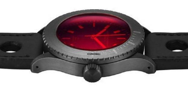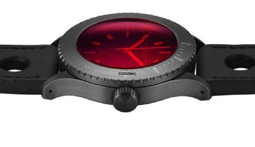 red sapphire crystal with anti-reflective coating on both sides | black rubber strap (22mm lug width) + 1 black red textile Nato strap